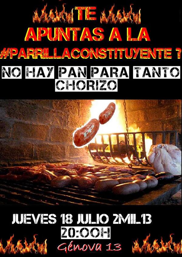 Podemos llamarlo "barbacoa" o incluso podríamos llamarlo "Ir de birras". Pero la realidad es que en estos momentos el gobierno se tambalea en sus, aparentemente, inamovibles lugares de poder y es un momento que no podemos desaprovechar. La situación es tan grave que no podemos quedarnos impasibles a la espera de que la justicia dicte sentencia. Ya sabemos lo que ocurre en estos casos, impunidad, sobornos e incluso amenazas y aquí no ha pasado nada.